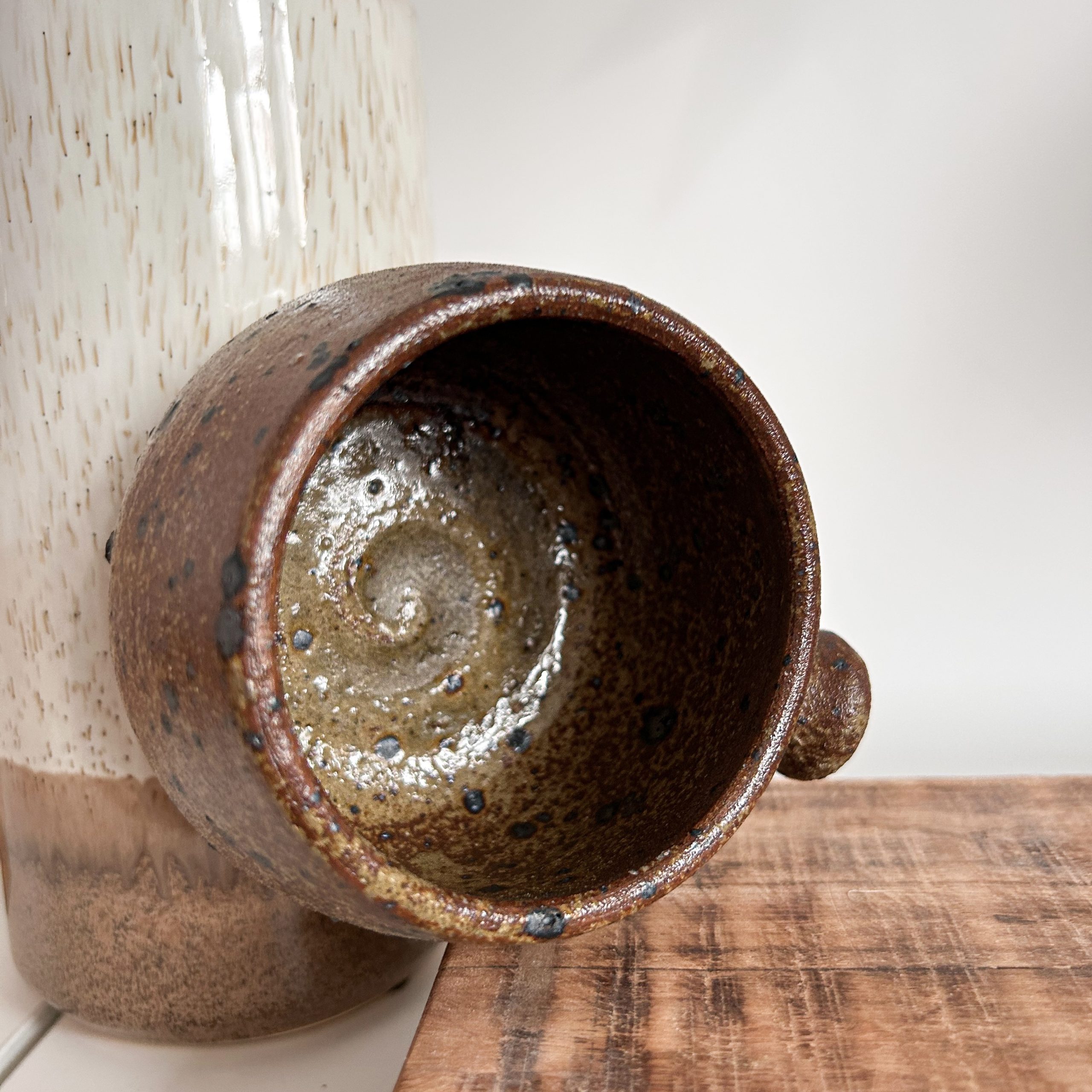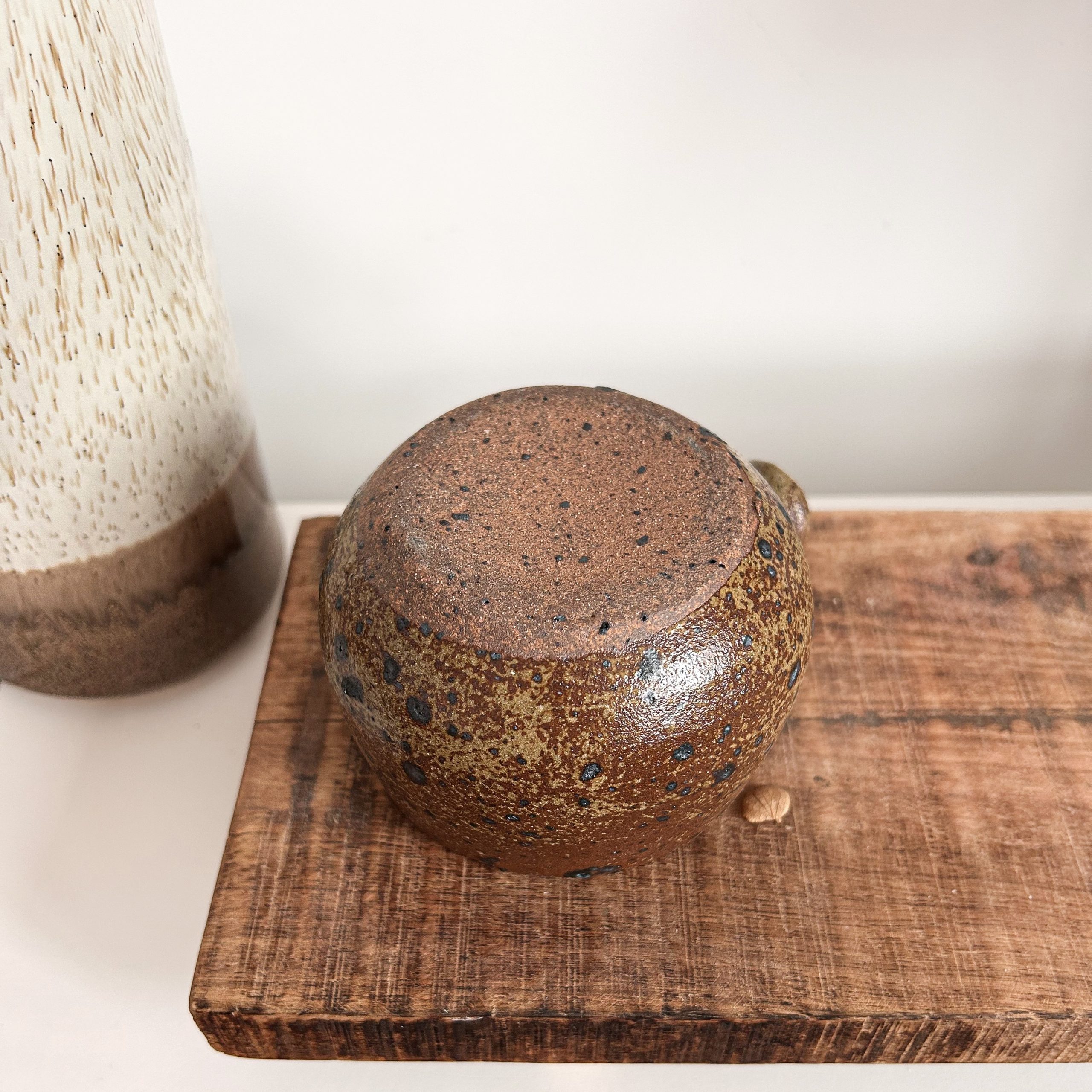 Victorine, avec sa silhouette généreuse et son grès pyrité aux nuances brunes, évoque ces instants gourmands où le temps suspend son vol : une soupe fumante servie au coin du feu, un café serré au petit matin, ou encore un velouté partagé sous une lumière tamisée.