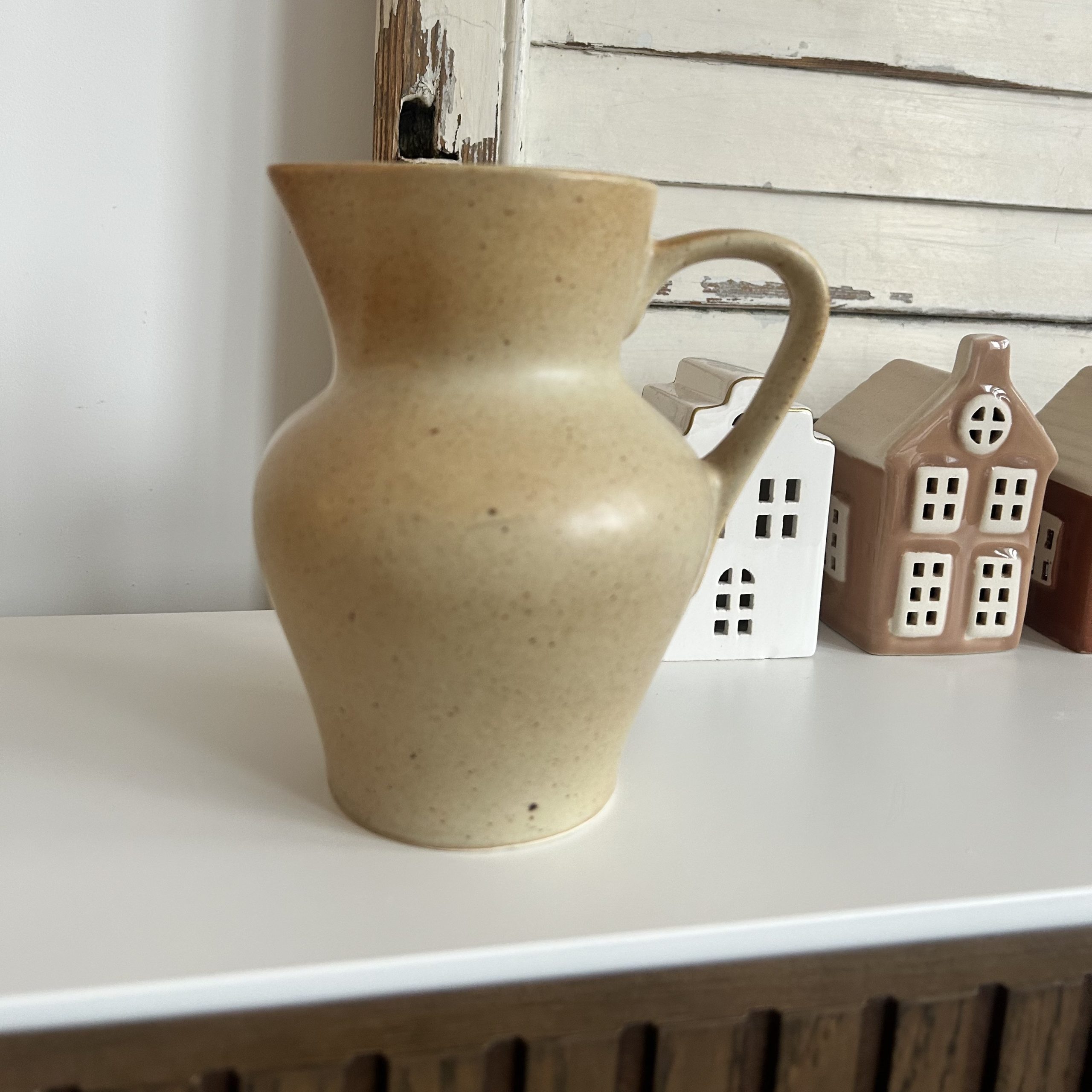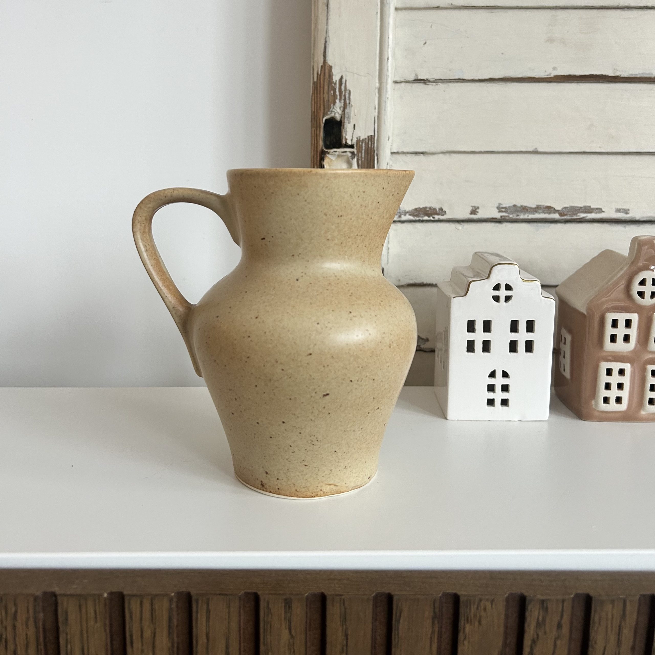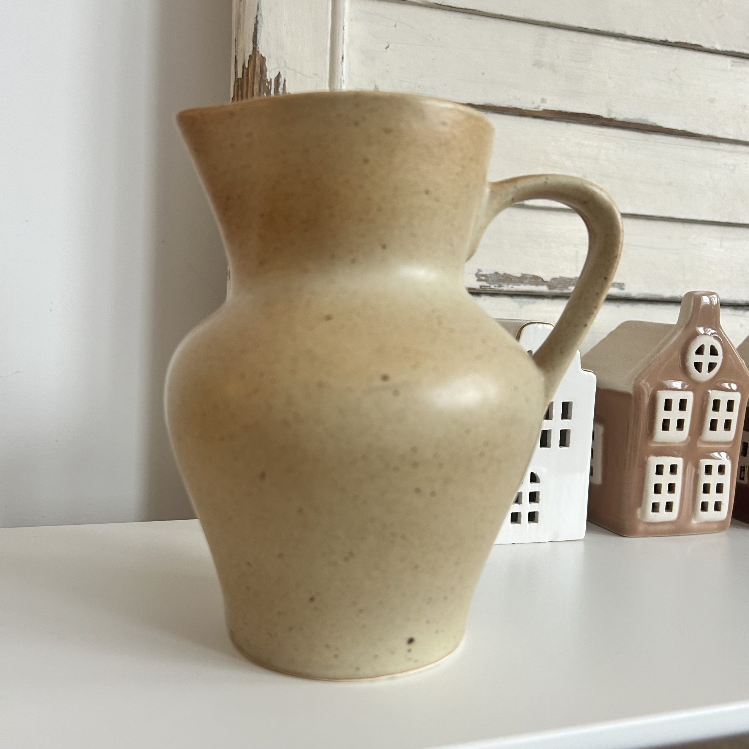 • Un pichet en grès à l’âme rustique : sa teinte beige légèrement tachetée rappelle la chaleur de la terre cuite au soleil.