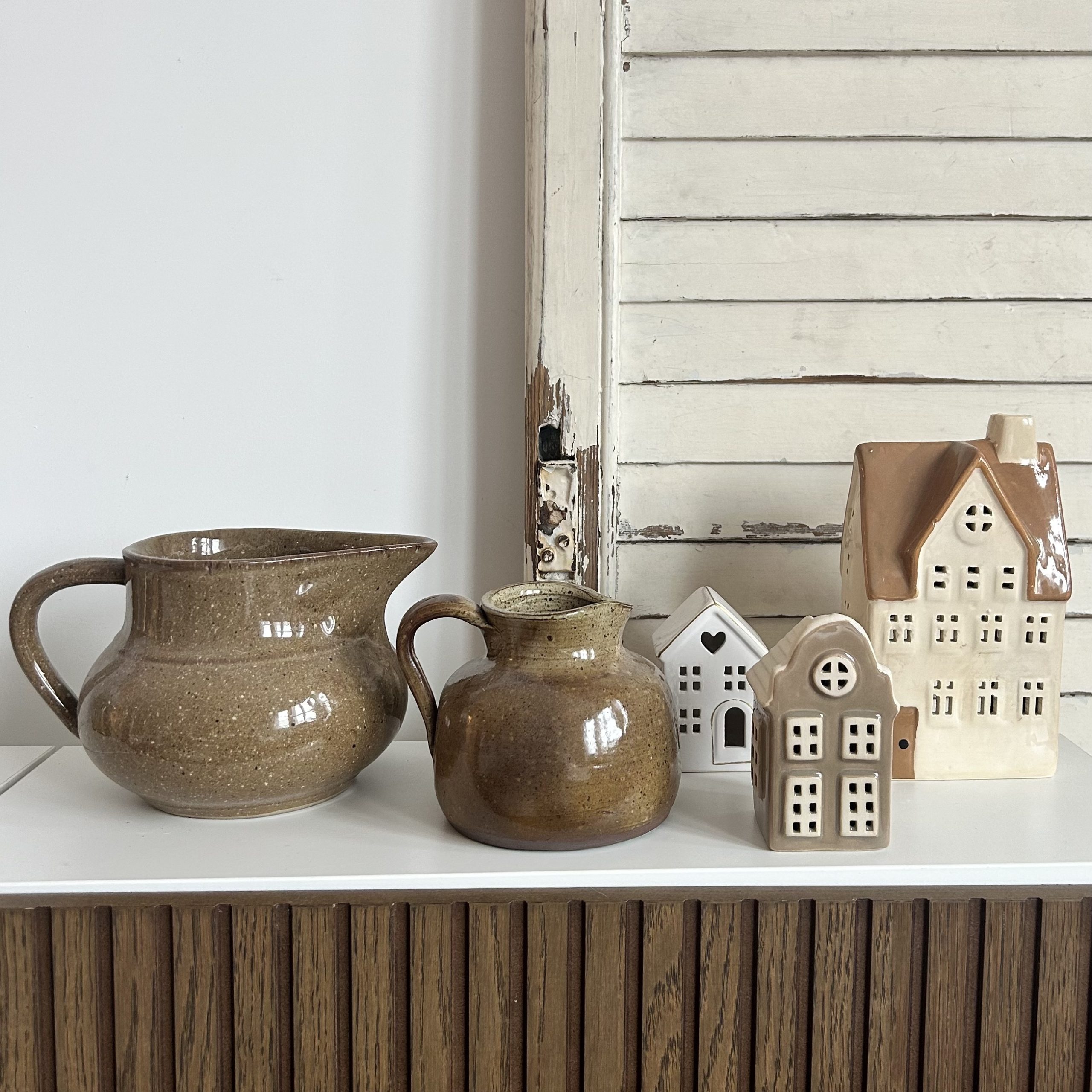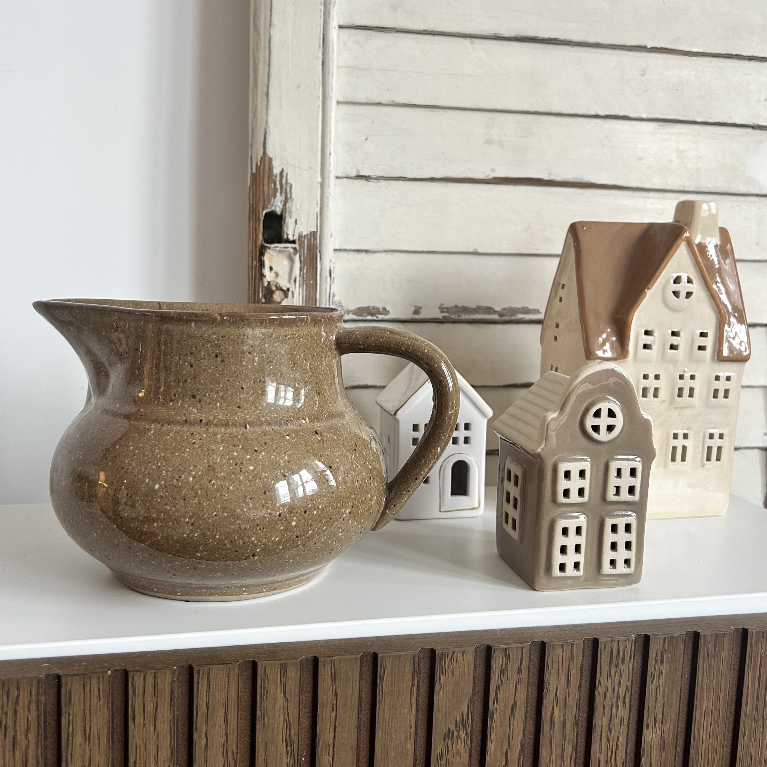 • Un pichet en grès artisanal : Une matière robuste, légèrement texturée, avec un émail chaud et luminueux.