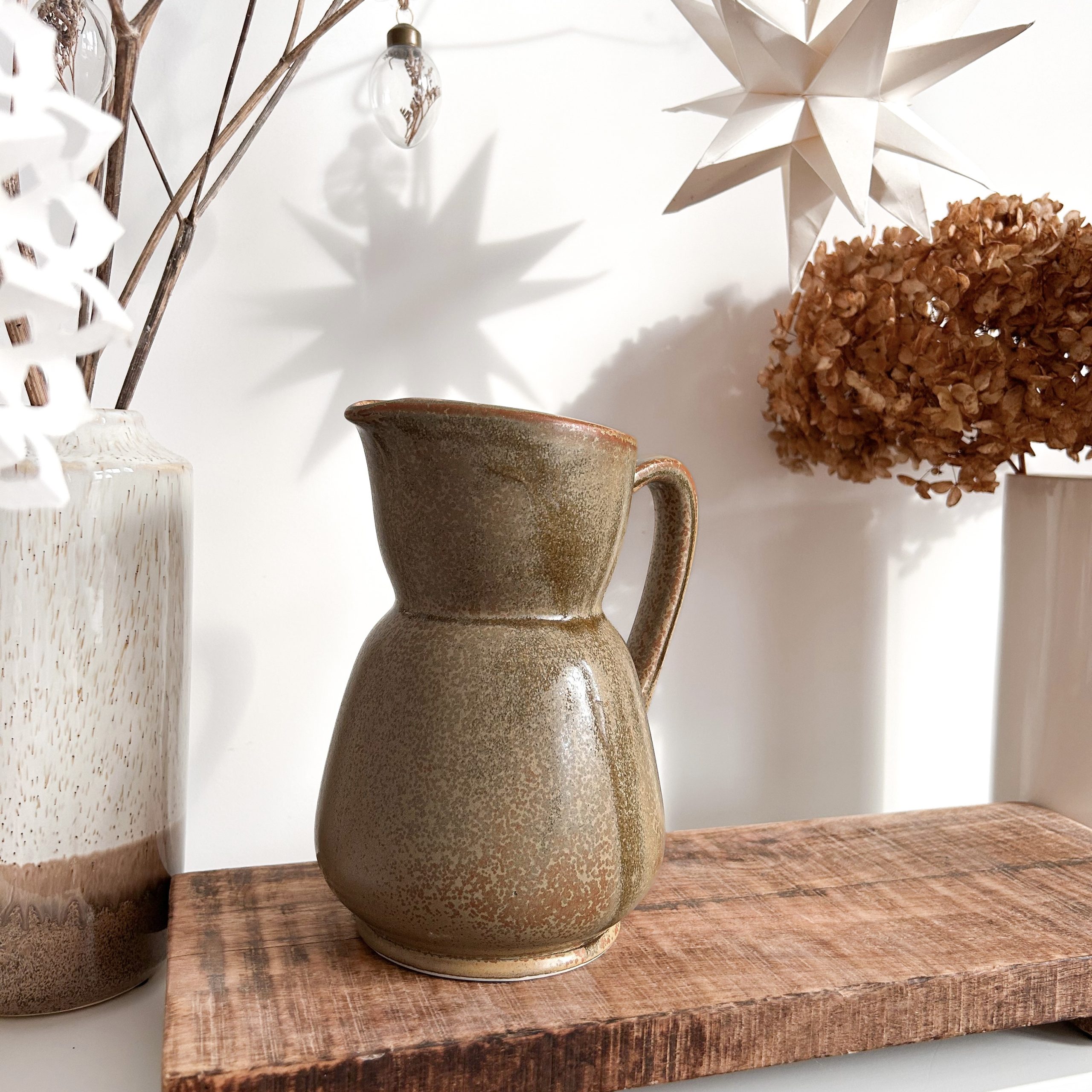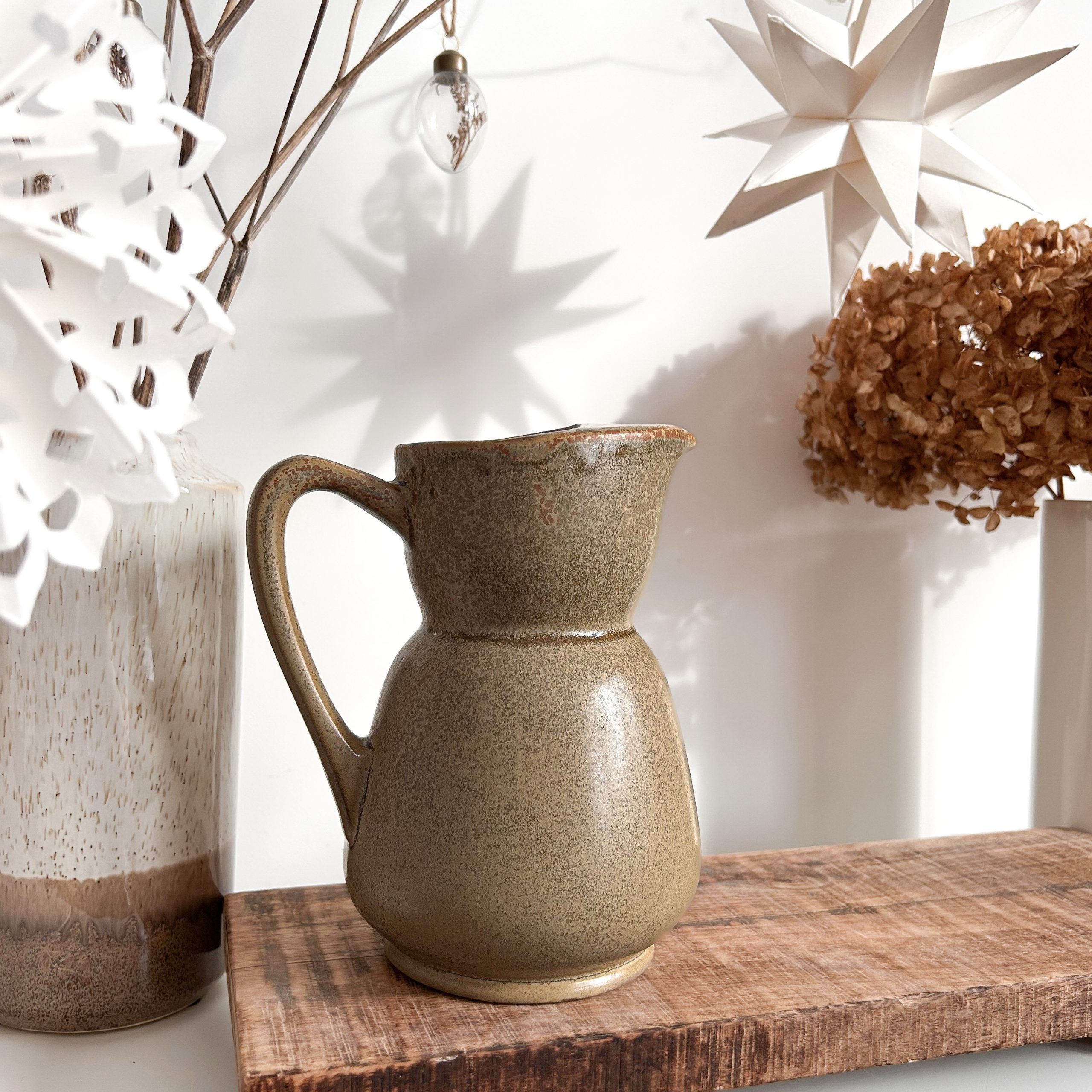Avec sa teinte naturelle oscillant entre le marron profond et le kaki subtil, le pichet Martin est une ode aux objets d’autrefois, ceux qui traversent le temps avec élégance et simplicité. Son petit bec verseur délicatement façonné en fait un compagnon idéal pour servir eau, lait ou vin, tout en apportant une touche d’authenticité à votre table.